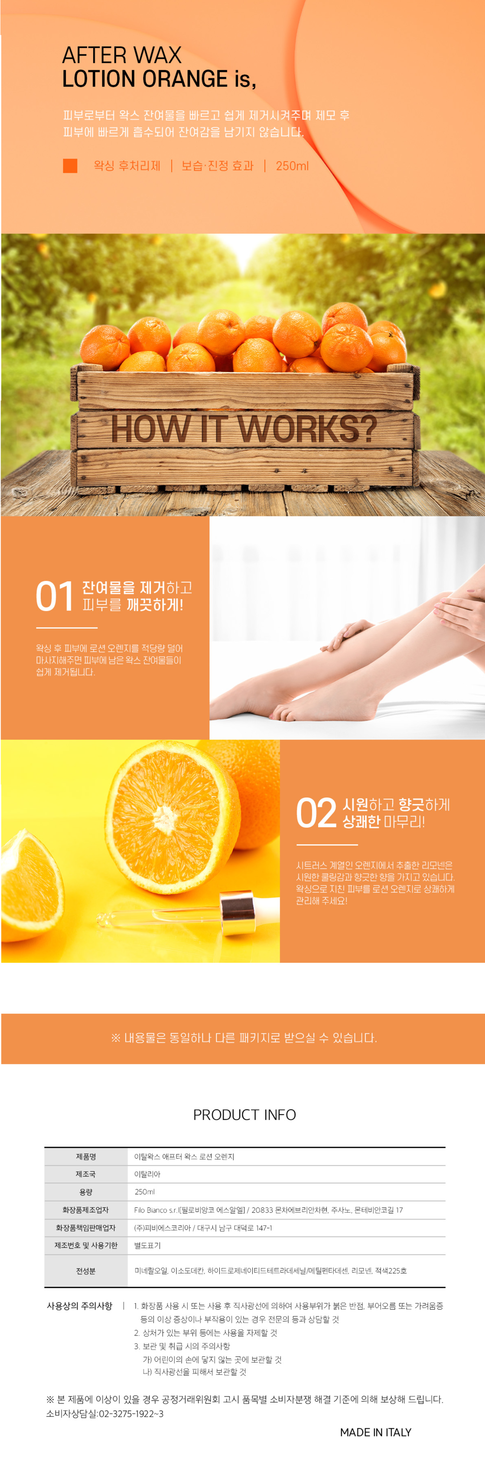 이탈왁스 에프터 후처리제 오렌지로션 250ml / 잔여물제거 피부보습 진정