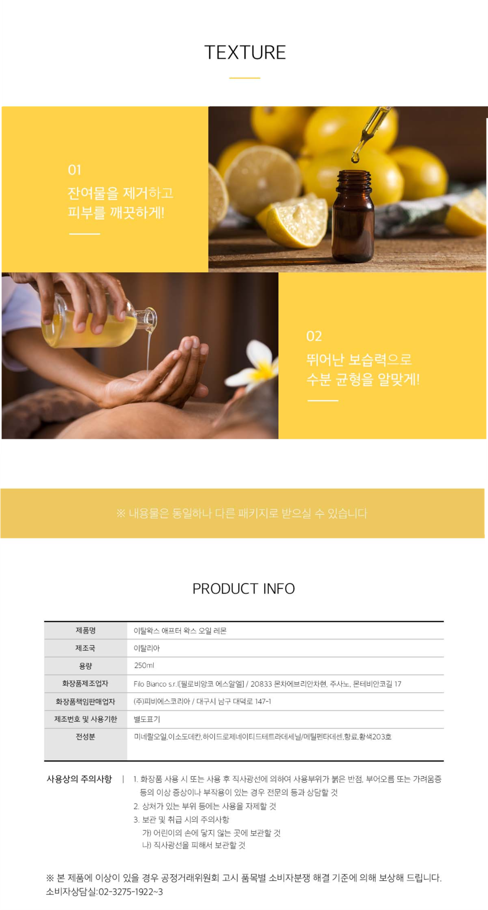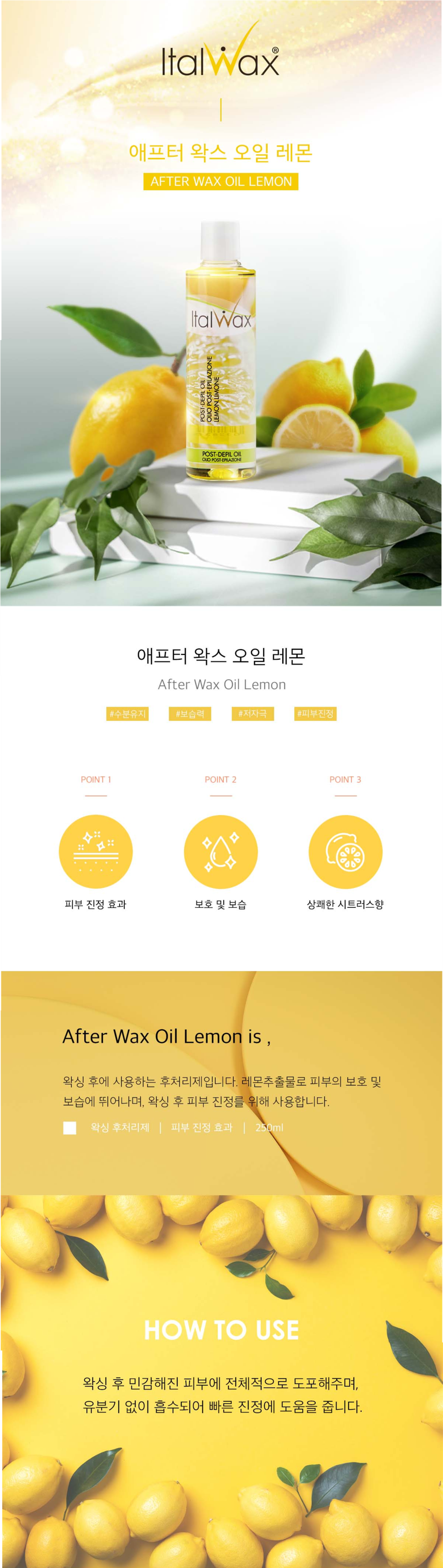 이탈왁스 에프터왁스 후처리제 레몬 오일 250ml / 왁싱잔여물제거 진정효과