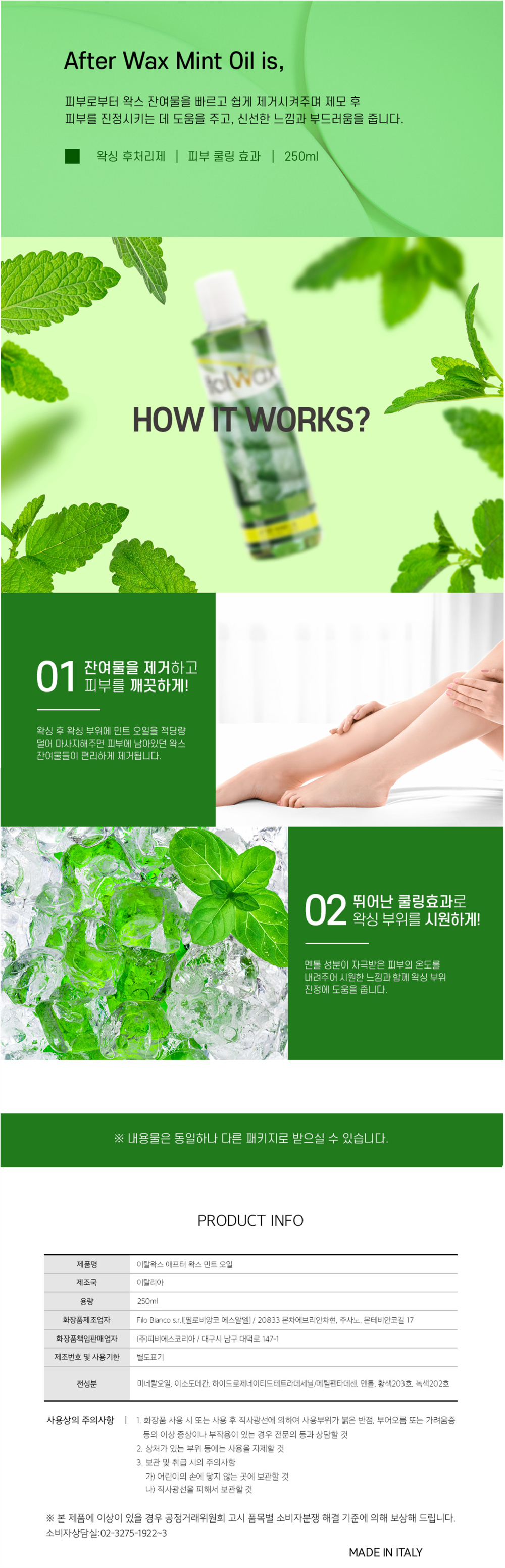 이탈왁스 애프터 후처리제 왁스 민트 오일 250ml /잔여물제거&쿨링