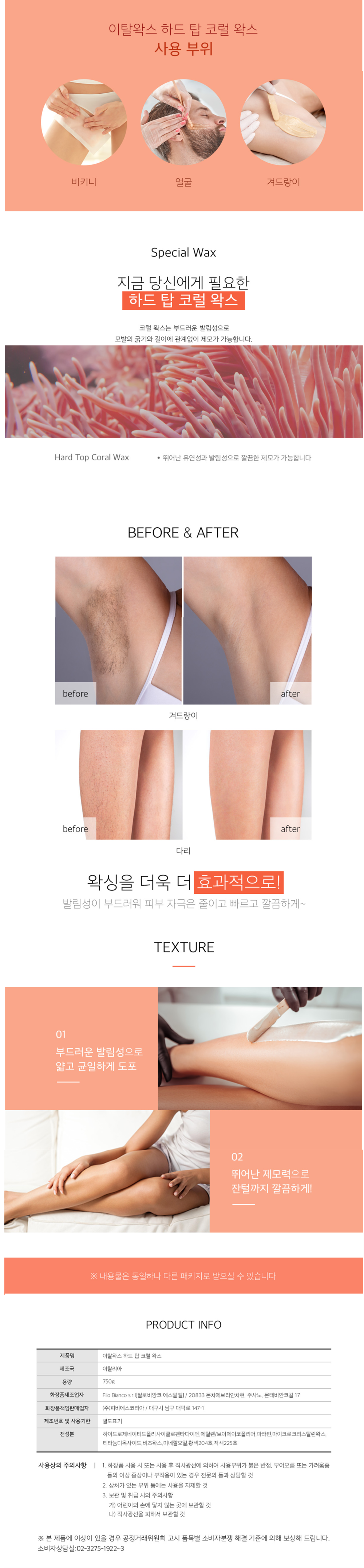 이탈왁스 하드 탑 코럴 왁스 750g / 얼굴 전신 브라질리언