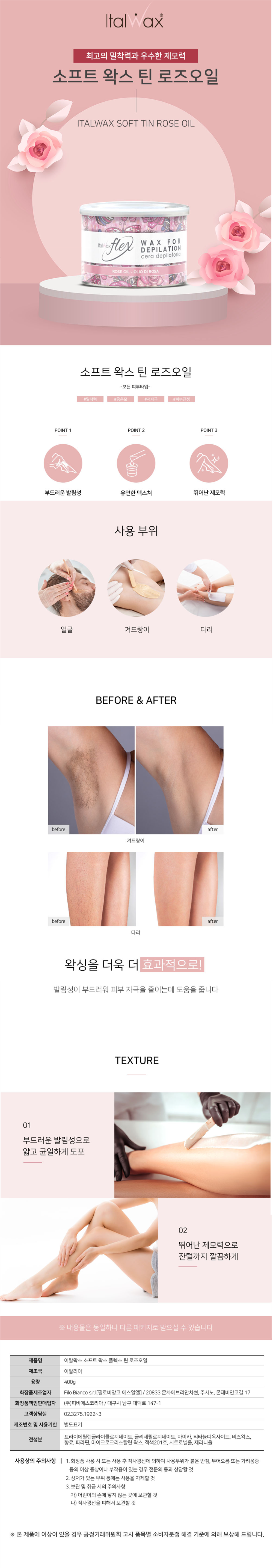 이탈왁스 소프트 왁스 플렉스 틴 로즈오일 400g / 팔 다리 얇은털 브라질리언