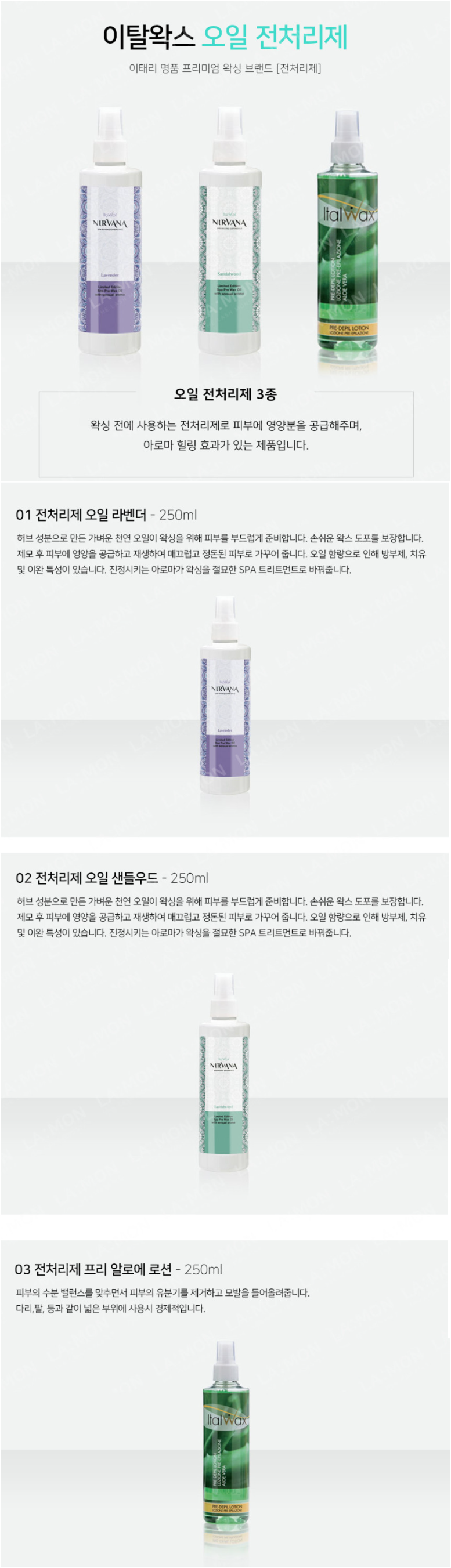 이탈왁스 전처리제 오일 너바나 샌들우드 250ml / 왁싱 유수분제거