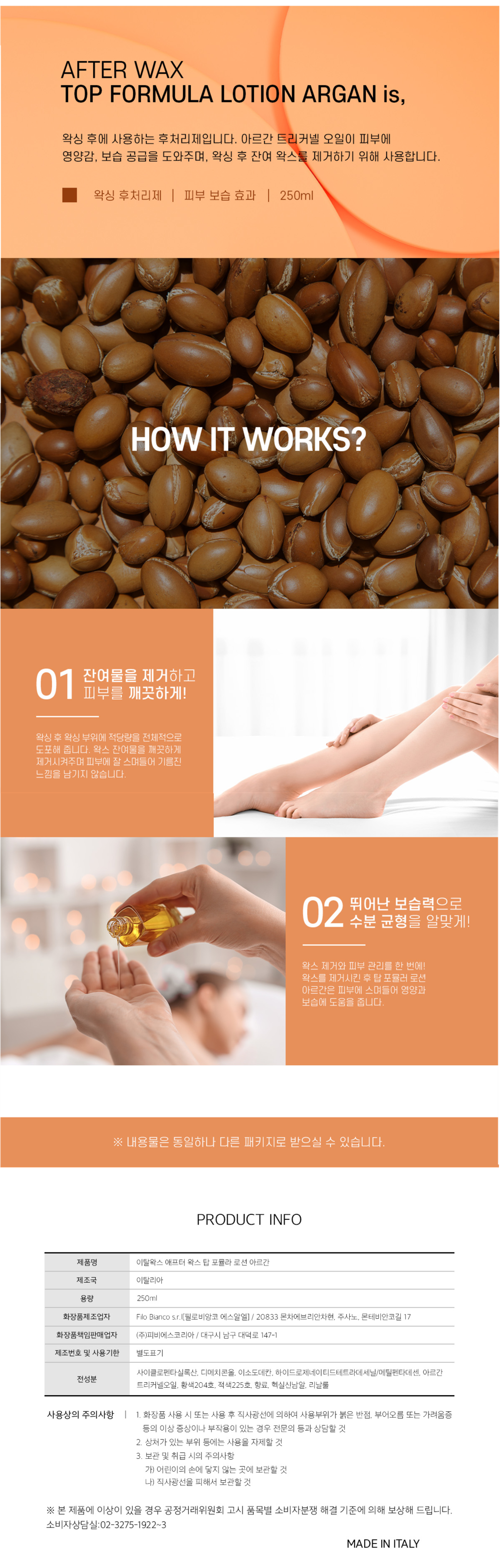 이탈왁스 에프터왁스 후처리제 아르간 로션 250ml / 왁싱잔여물제거 진정효과