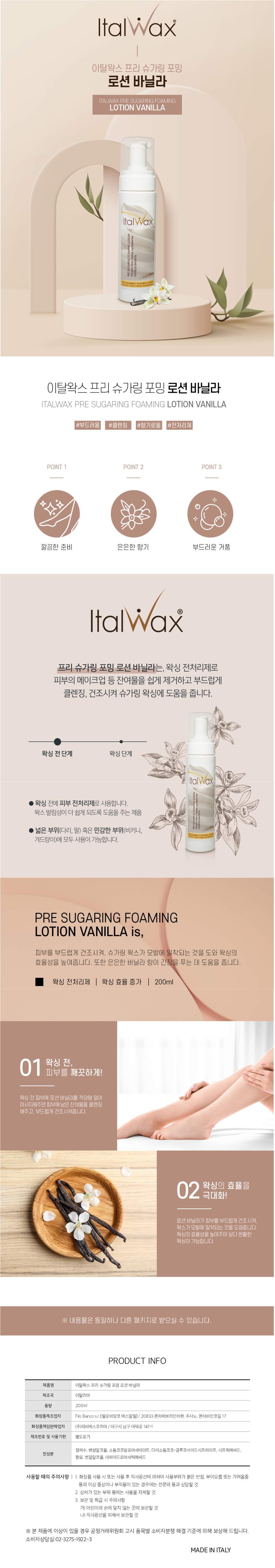이탈왁스 전처리제 슈거링 포밍 로션 바닐라 200ml