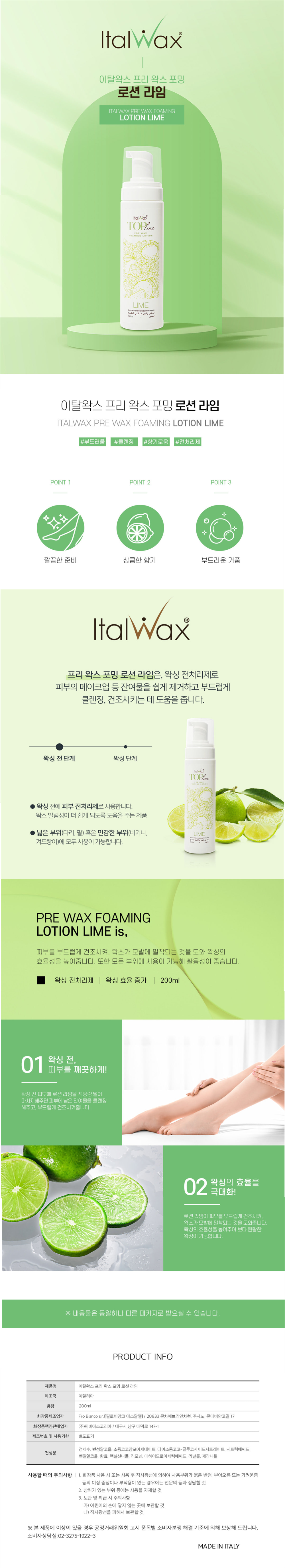 이탈왁스 전처리제 왁스 포밍 로션 라임 200ml