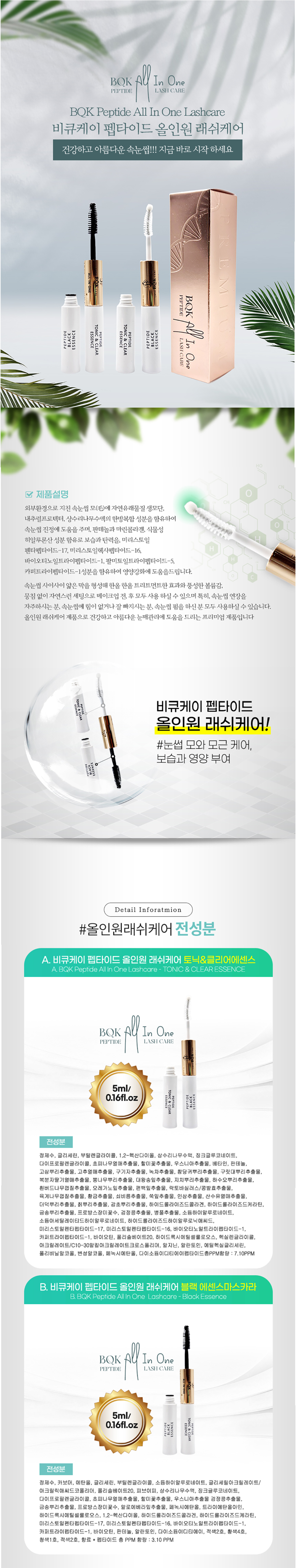 비큐케이 펩타이드 올인원 래쉬케어 토닉&블랙마스카라 세트 속눈썹연장 펌 영양제 에센스