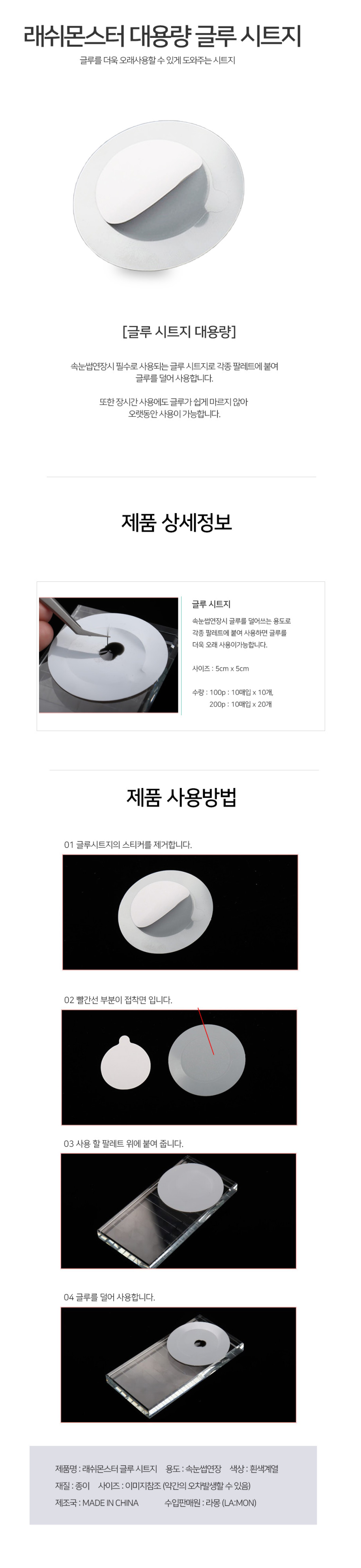 글루 시트지 반투명 5cm x 5cm [100매] / 글루파렛트 / 받침대 / 글루 패치
