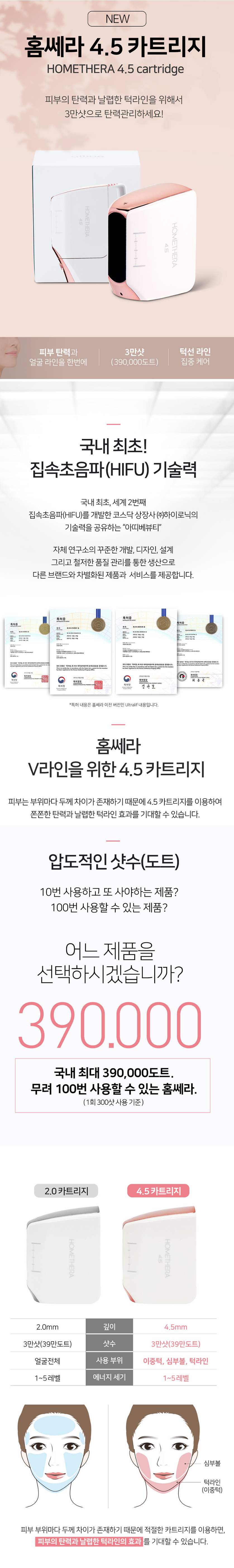피부 부위마다 두께 차이로 날렵한 턱라인 효과를 위해 4.5mm 전문가용 카트리지!