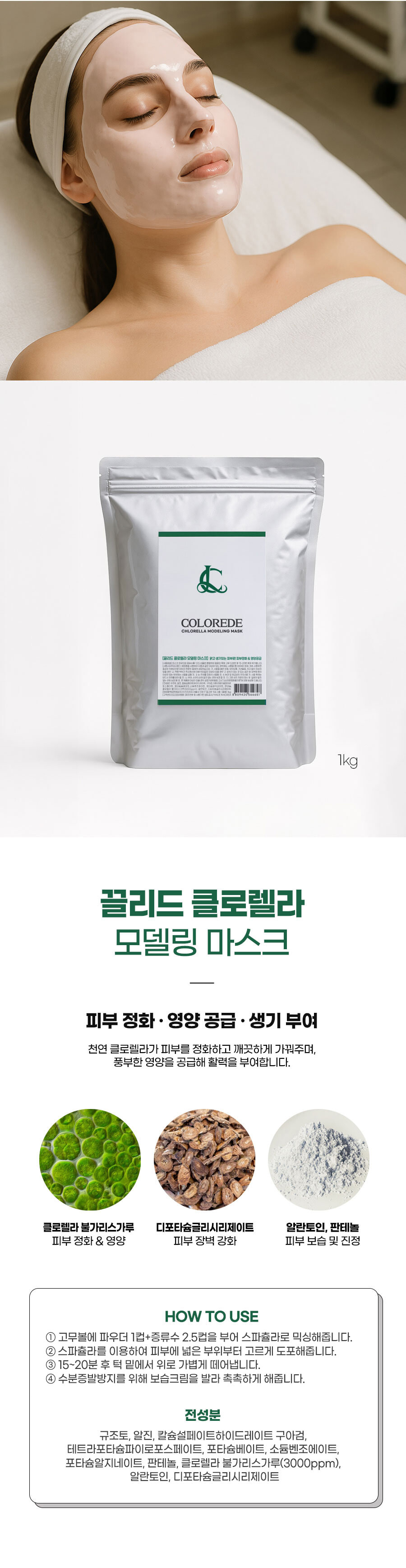 끌리드 모델링 마스크 1kg(쿨, 클로렐라, 콜라겐) 모델링 팩 /스킨플래닝