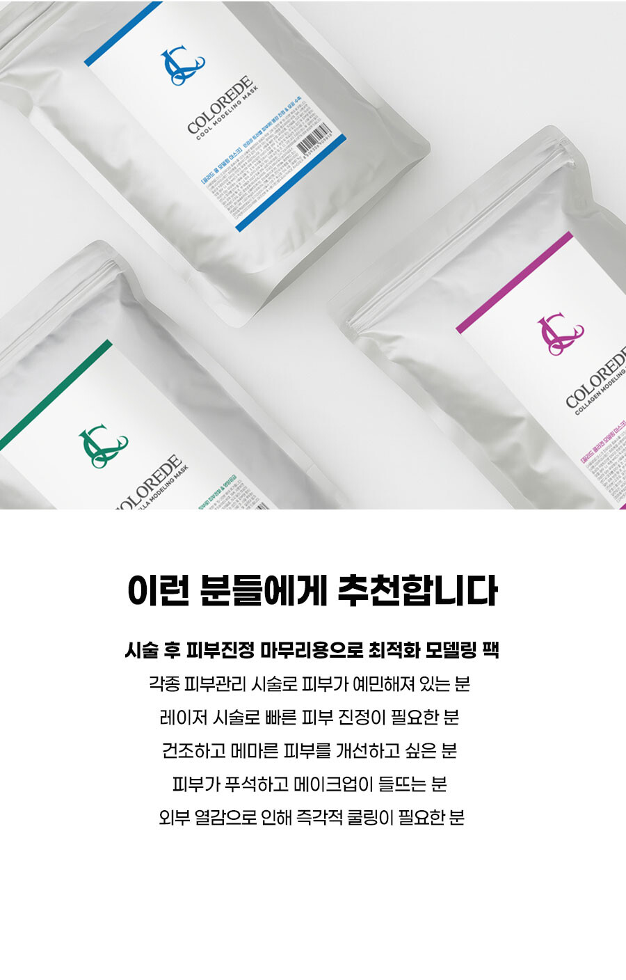 시술 후 피부를 빠르게 진정시키는 차가운 마무리 피부를 진정시키고 영양을 공급하며 탄력까지 케어하는 끌리드 프리미엄 모델리 마스크 3종