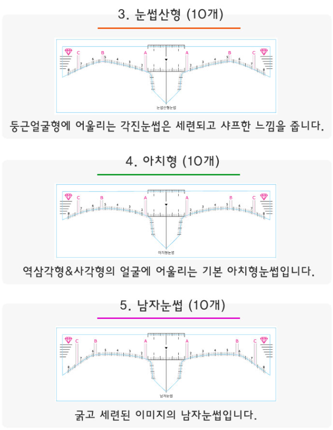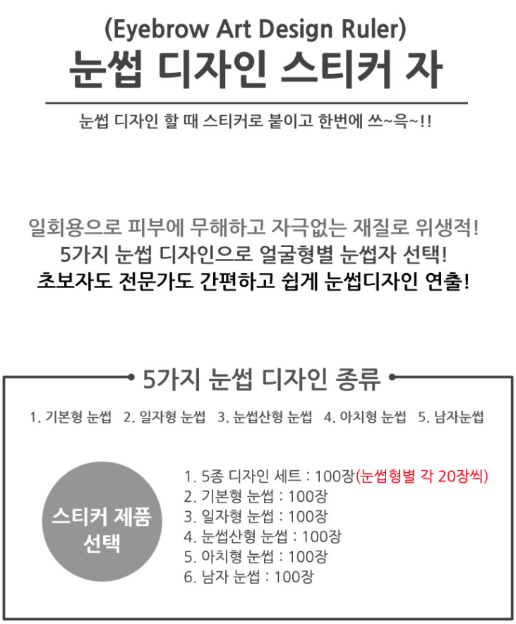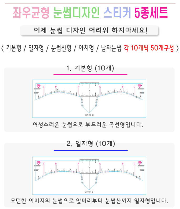 눈썹 디자인 스티커 자 세트 100장 / 디자인 자 / 눈썹자