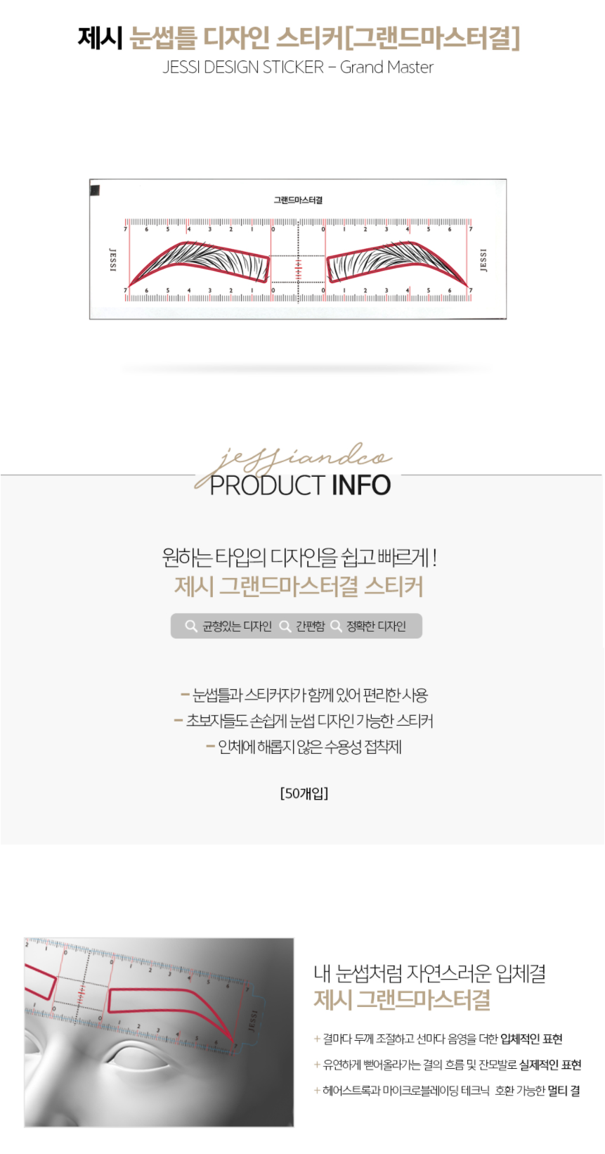 눈썹틀 디자인스티커 [그랜드마스터결] 50장 / 디자인 자 / 눈썹자