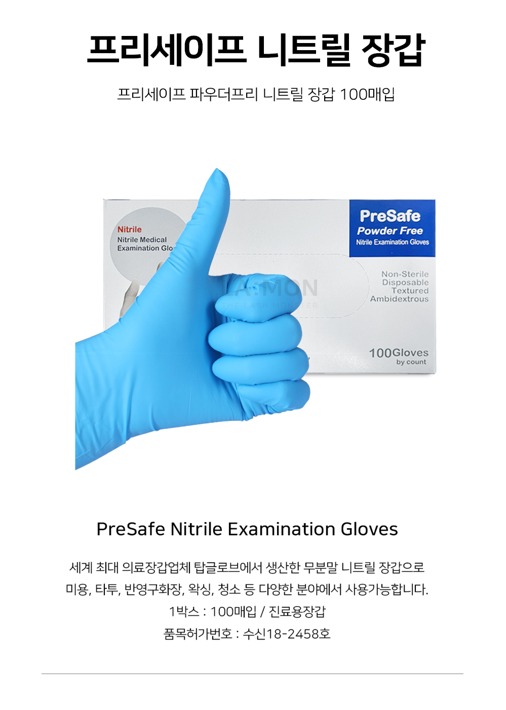 프리세이프 니트릴 장갑 100매입 무분말 반영구화장 속눈썹시술 왁싱 타투 피부샵 / [시술장갑] / 사이즈 XS / S / M / 파우더프리