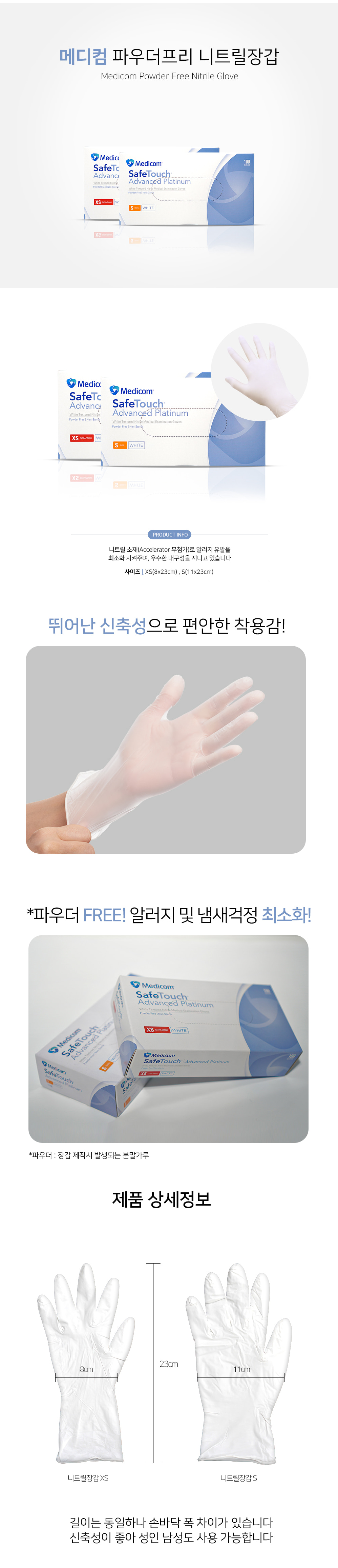 [메디컴] 파우더프리 니트릴장갑 100입/ [시술장갑] / 사이즈 XS / S
