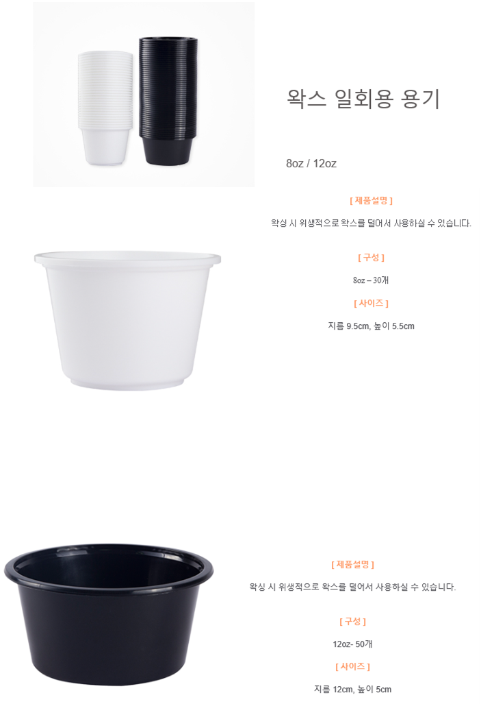 왁스 일회용 용기 / [8oz 30개] 화이트 / [12oz 50개] 블랙