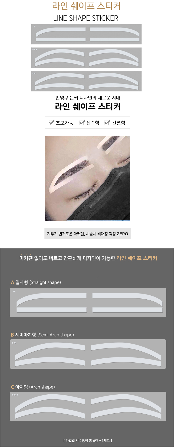 라인 쉐이프 스티커 / 아웃라인 테이프 6쌍