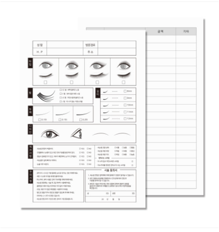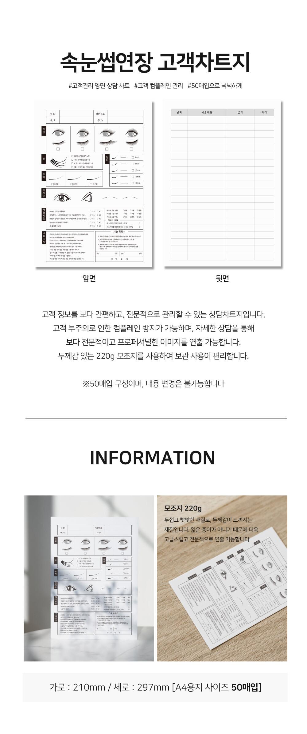 속눈썹 연장 고객 차트 양면 50매입 고객 관리 시술 동의서 A4 두꺼운 모조지