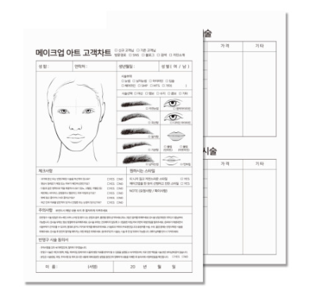 반영구화장 고객 차트 양면 50매입 고객 관리 시술 동의서 A4 두꺼운 모조지